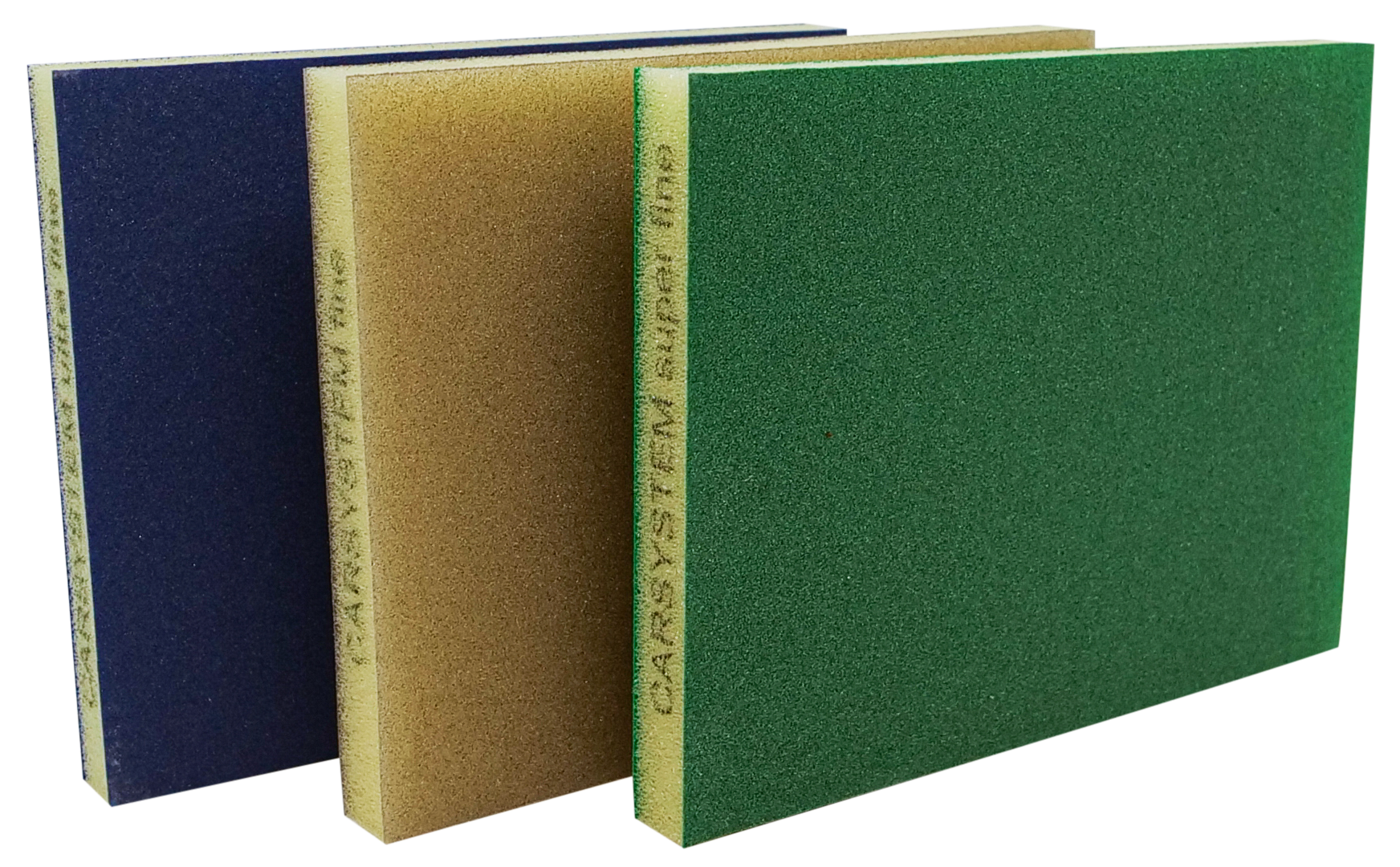 Kaksipuolinen pehmeä hiontatyyny, jossa väliosa on vaahtomuovia. Siis tupla määrä hiovaa pintaa. Värillinen alumiinioksidirae.
