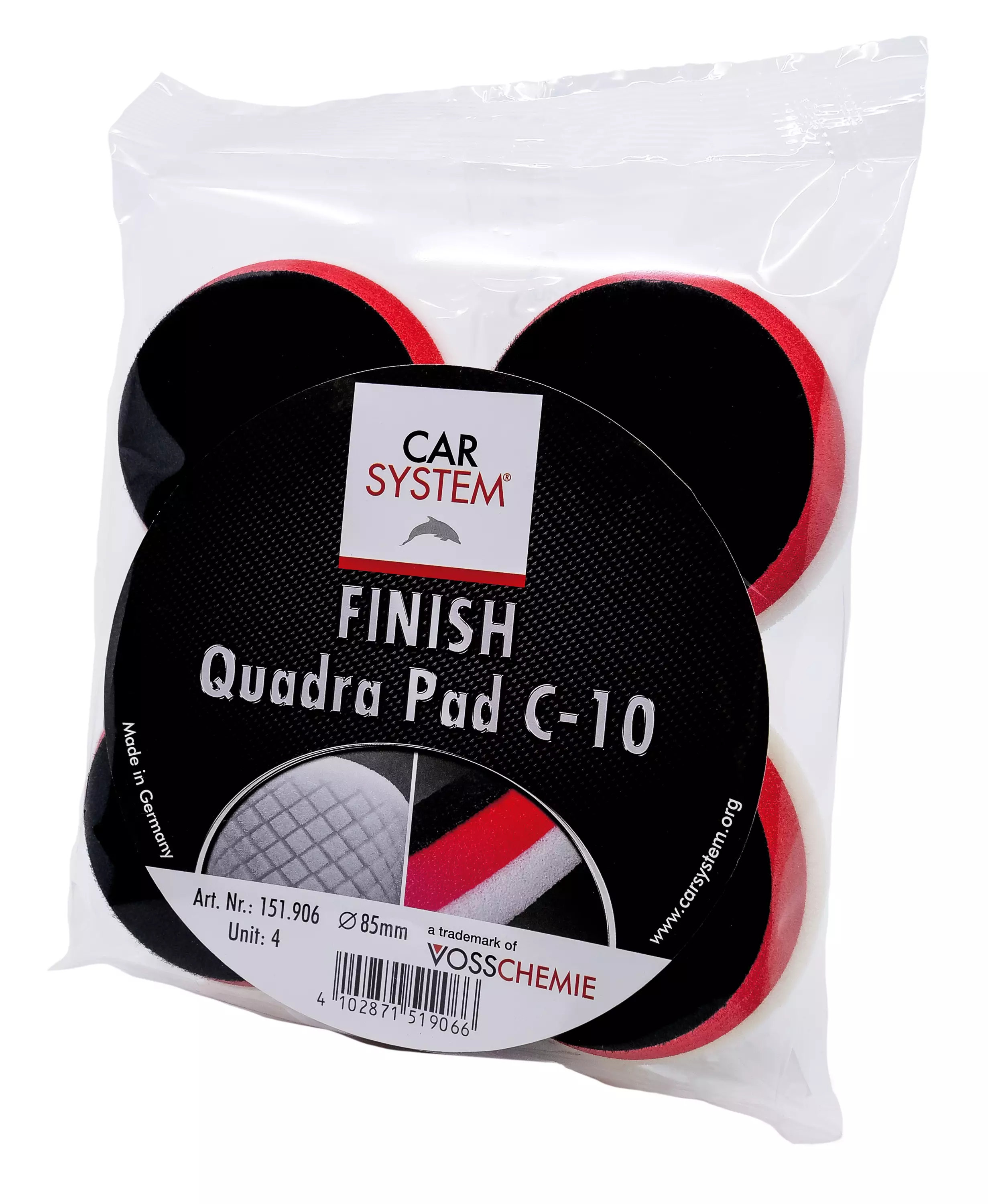 Carsystem Finish Quadra Pad C10 on kova vaahtomuovityyny hiovaan kiillotuskäsittelyyn, joka pitää lämmönkehityksen matalana hämähäkkileikkauksen takia.