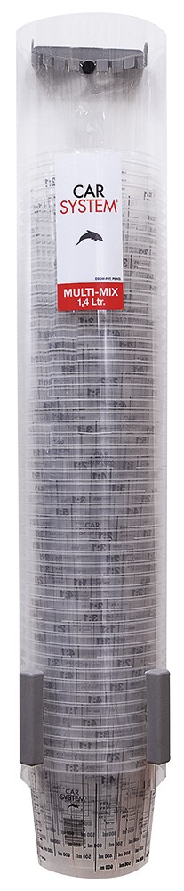 Korkealaatuiset kupit puhdasta ja tarkkaa sekoitusta varten. Kaikille maaleille, lakoille ja hiontaväreille. Mittasuhteet 1:1:stä 5:1:een, sekä normaali ml taulukko 50 tai 100 ml viivastolla...